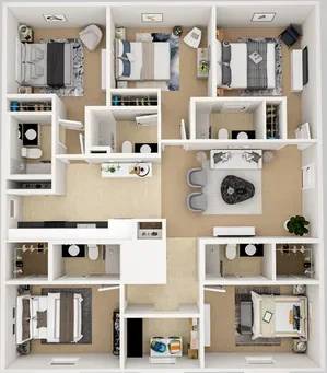 Miramar’s unique apartment design offer 5 bedrooms, each with their own private bathroom, spacious living room and washer/dryer connections. Our apartment homes are centrally located 3 miles away from historic downtown Kissimmee and less than 12 miles from Disney World. At Miramar you can start your day in our fitness center or take a dip in our sparkling pool; our relaxed community fits all of your needs. Once you visit you will never want to leave. Stop looking and start living!