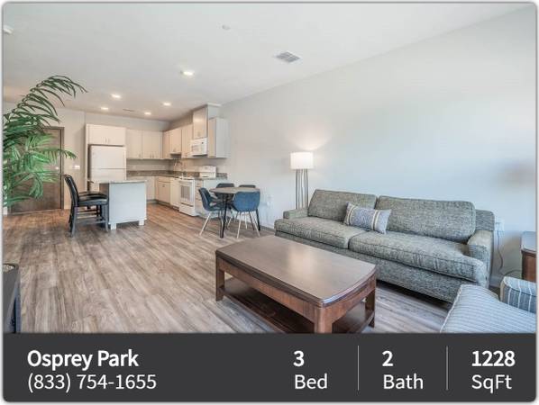 *Osprey Park 62+ Living participates in the affordable housing program where income limits apply. Our community is for residents 62 years and older and total household income must be under the following limits based on household size: 1 Occupant: $36,900 | 2 Occupants: $42,180 | 3 Occupants: $47,460 | 4 Occupants: $52,680 | 5 Occupants: $56,940 | 6 Occupants: $61,140. Please visit our website for more information.