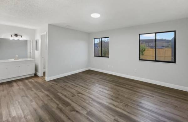 This elegant and contemporary 3-bedroom, 2-bathroom residence offers the perfect balance of style and functionality. Designed with comfort in mind, the home features spacious living areas, a modern open-concept kitchen, and a bright dining space ideal for gatherings. The primary suite includes a private en-suite bathroom and ample closet space, while the additional bedrooms are perfect for family, guests, or a home office. Large windows fill the home with natural light, creating a warm and inviting atmosphere. Step outside to enjoy a private patio and backyard—perfect for relaxing or entertaining. Nestled in a peaceful community close to schools, parks, shopping, and transit, this home is move-in ready and waiting for you to make it yours!