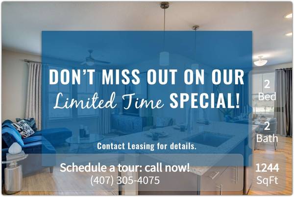 MOVE-IN SPECIAL: Receive one month free when you move in by 12/31.* *Restrictions apply; offer subject to change at any time. Credit will apply to the second full month's statement. Special excludes all property transfers.