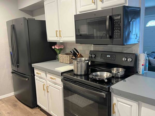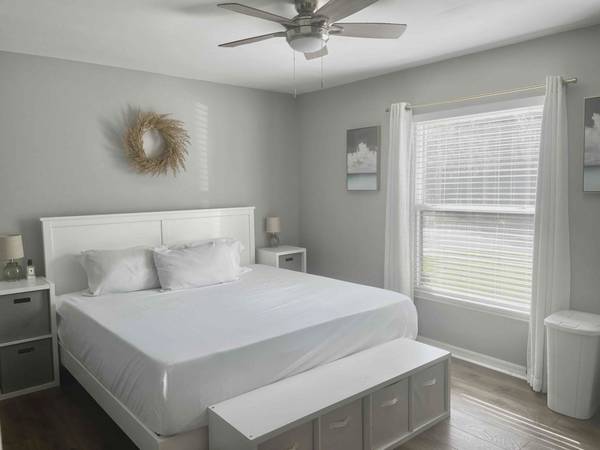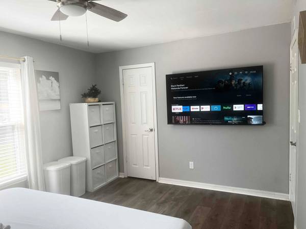 Our residence is a 2bd 1bth house. The home fits a King and a Queen bed, of course has a full kitchen, Spacious living room, plenty of closet space, comes with a washer and dryer. The rooms also come with mounted TVs for entertainment. EV charging available. Located in the quiet, safe, peaceful suburbs of Ocoee. This location offers easy access to beautifully preserved nature trails, easy to reach city entertainment, and outdoor venues. Our location offers less than a 15min drive to downtown services, easy access to major transit arteries (toll roads), 25min to DisneyWorld & Universal, along with many popular local shopping centers and restaurants.