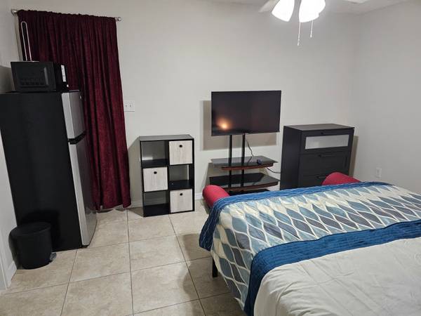 Chickasaw area. Estudio disponible, completamente amueblado con entrada independiente y todos los servicios incluidos, estacionamiento privado, no tiene cocina pero tiene refrigerador, microondas. $325 de deposito. No mascota. Una persona que trabaje.