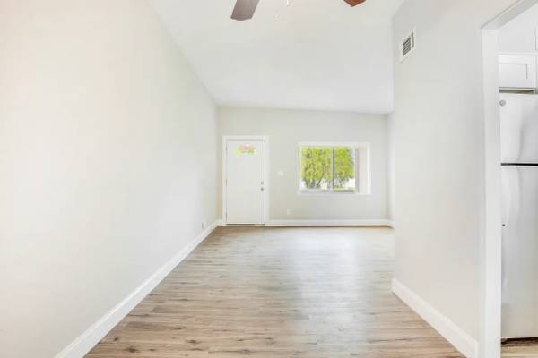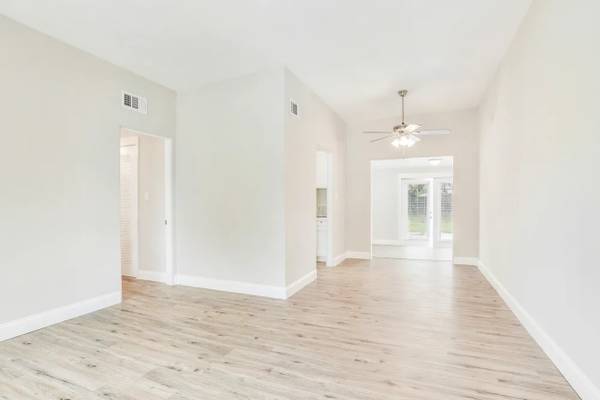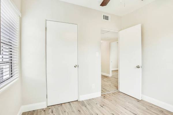 Bright 4 bed with open layout, wood-style floors, great closet, and A/C. Full kitchen with gas range, dishwasher, and fridge; modern bath with tub. On-site laundry.
