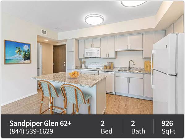 Welcome to Sandpiper Glen, a community for adults 62 years and older, where local charm meets sophistication. Brand new and ready to redefine the way you see affordable senior living, our pet-friendly apartments in Orlando, FL, are now open and leasing online. Discover our collection of stylish 1, 2, and 3 bedroom apartments and embrace the numerous amenities and impeccable services that come attached to our premium community. Sandpiper Glen participates in the affordable housing program where income limits apply. Please visit our website for income limits and more information. TTY: