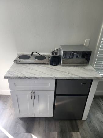 Working single professional NO REMOTE FROM HOME Private Studio Fully furnished Bed ,tv, hotplate, microwave, toaster, refrigerator, Kitchenette Electric , water and high speed wifi all included...