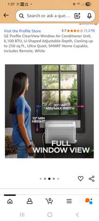GE Profile clearview 6100btu Window A.C is adjustable to fit lower in your Window to give you a clearview out of your window also includes remote & can cool small rooms up to 250sqft