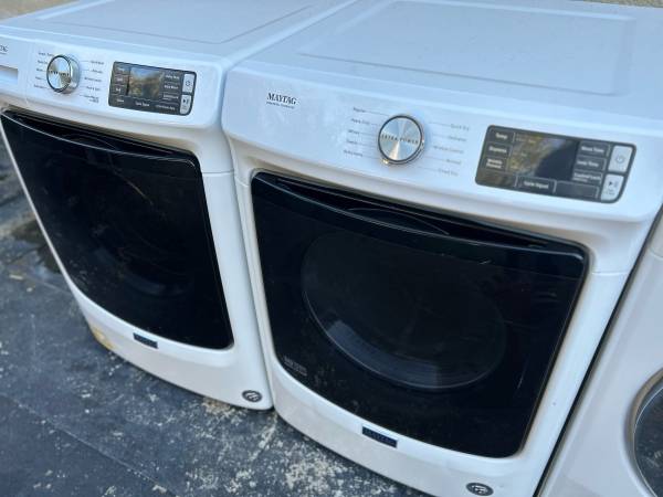 🌀 Front-Load Maytag set in like-new condition — washer and dryer can be stacked vertically or placed side-by-side for flexibility.