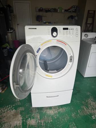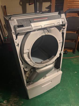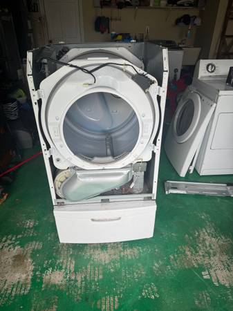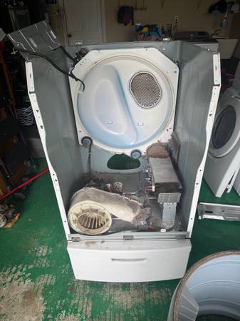 I document my work on every machine I rebuild, and this dryer has been completely cleaned inside and out. It also comes with the storage pedestal for detergent and supplies.
