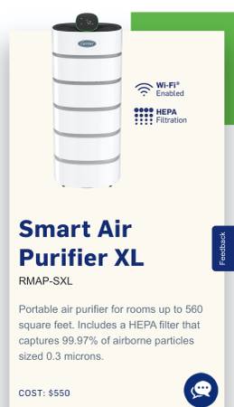NIB Carrier Smart Air Purifier XL (Model # RMAP-SXL). See photos for complete description. No low-ballers. $325 cash only. No phone calls. Contact at . Local pick up only.