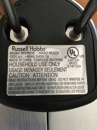 1) Russell Hobbs Electric Manual Mixer - Polished Silver Steel Finish - Matte Black - Power 240 watt - 120 V 60 Hz - 16 speeds - Turbo Function - Easy and Safe Eject Button.