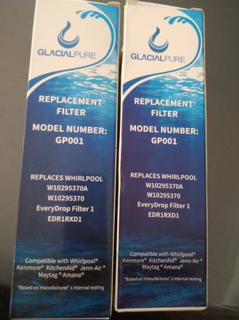 lot of 2 replacement filter model Number GP001 replaces whirlpool W10295370A , W10295370 EveryDrop filter 1 EDR1RXD1 $10.00 for both, Cash and pick up only