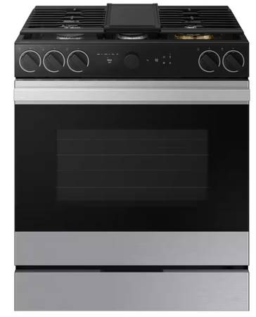 Samsung Bespoke 30 in. 5-Burner Smart Slide-In Gas Range in Stainless Steel with Smart Oven Camera and Air Fry