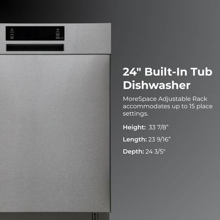 Kenmore 24" Built-in Stainless Steel Tub Dishwasher EasyFlex 3rd, SmartWash, UltraWash Plus, TurboDry, and Adjustable Rack, Energy Star Certified, Fingerprint Resistant.