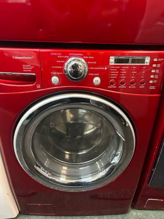 Washer and dryer set made by LG ruby red in a great condition. Very nice color has pedestal drawers or it can be stuck or stacked side-by-side. Extremely nice working condition comes with one year warranty. I could deliver it for additional. My phone number is show contact info