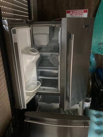 Maytag stainless steel, front door, bottom drawer freezer, icemaker works, new water filter, had issues with freezer condenser coil, everything else is good. Very solid refrigerator. I’ve had it for years, had to replace it due to size. New ones are around $3000. $100 OBO.