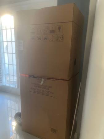 New 27” Frigidaire stackable washer & dryer 3.9 cu ft top load washer 5.6 cu ft Dryer Model # FLCG7522AW