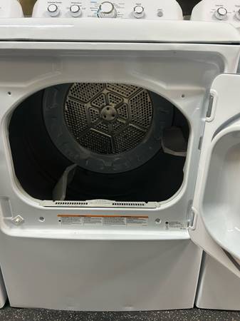 Selling a slightly used General Electric washer and dryer set (new mayo model) – includes agitator, smart features, and 24-month warranty.