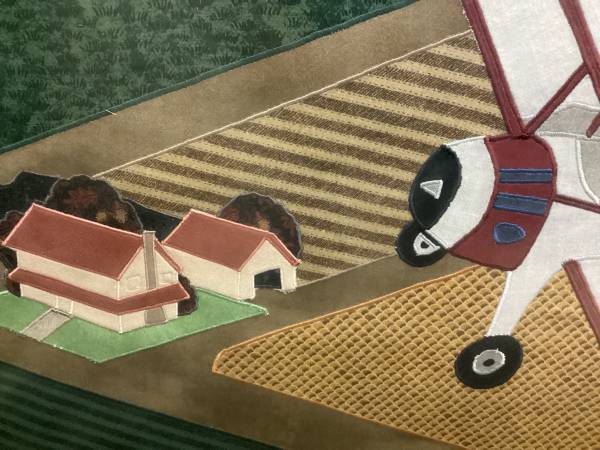 “One of a Kind” … Beautiful Hand Sewn Image of a Bi-Plane in Flight over a Farm in a Beautiful Wood Frame (40” Wide/29” Tall) in Excellent Condition for Sale for ONLY $80.00. If interested, please call show contact info