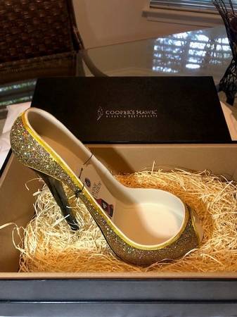 From the vineyards of Cooper's Hawk Winery and Restaurants, This exquisite Lady's Shoe is actually a wine bottle holder. Ideal for gift-giving. This eloquently designed "High Heel" is intended to be used to present the gift receiver with their beverage of choice as part of a once-in-a-lifetime gift. The wine pictured is for display purposes only and is not included.