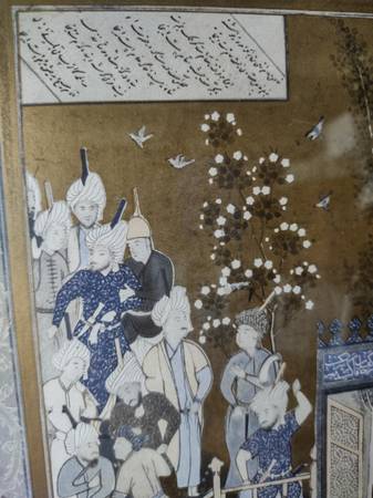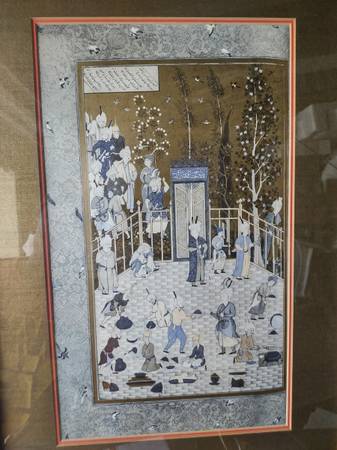 For sale is a 1920s Antique Persian Miniature Painting – Framed & Gilded in excellent cosmetic condition. This beautiful art piece was bought at a local Estate sales. Dimensions are 22 X 16" ( Frame ) and 15 X 9" ( Art ) . $ 160 Cash . Local pick up. Serious buyer please!!!