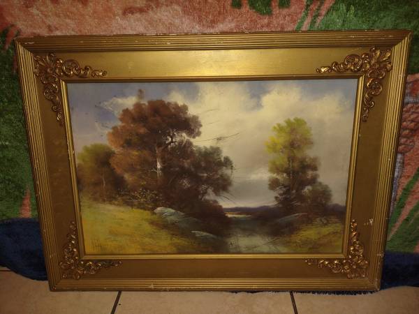 For sale is an ANTIQUE English 1800s Landscape Oil Painting 19th C with Victorian wood Frame in excellent cosmetic condition. Art piece bought at Estate sales. Signature at bottom left. Dimensions are 30 1/2 X 22 1/2" for the Frame and 24 X 16" for the Art. A wonderful piece of art for collectors. Local pick up only. Serious buyer please call or text, No emails. $