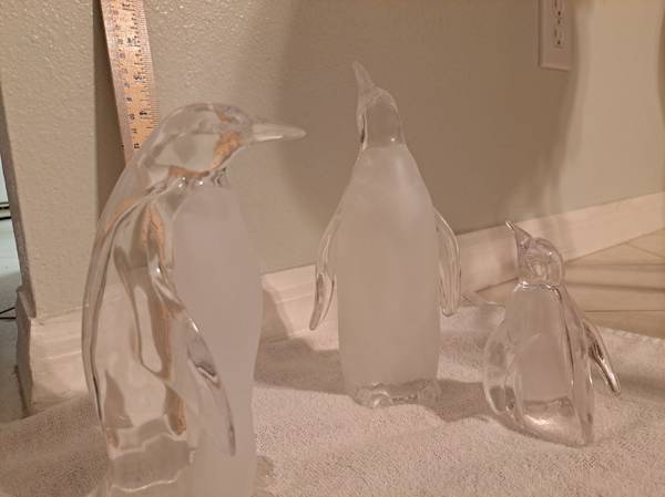 This cute set of a family of penguins came from a Winter Park gallery. I paid $50 for it, but willing to sell for $25 or best offer by Christmas. Cash and local only. Price negotiable. There are no cracks, chips. Looks like heavy thick glass, but not heavy. See photos.