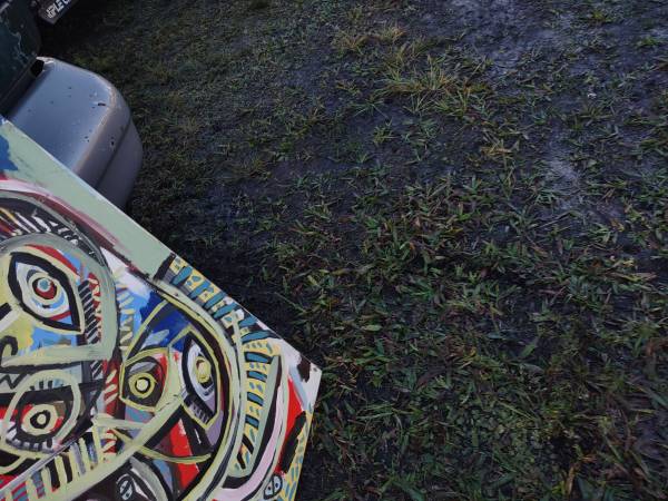 Alkhovsky's works often depict a fragmented, confrontational world, using oil and acrylic paints.