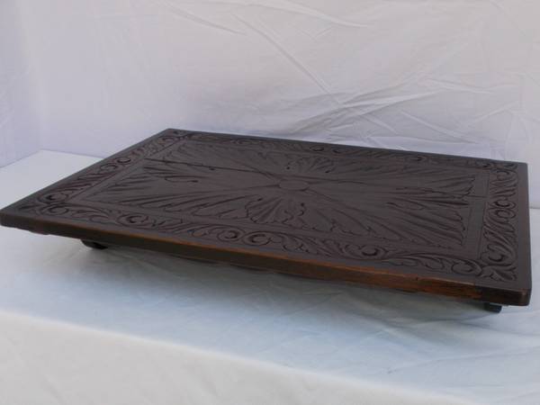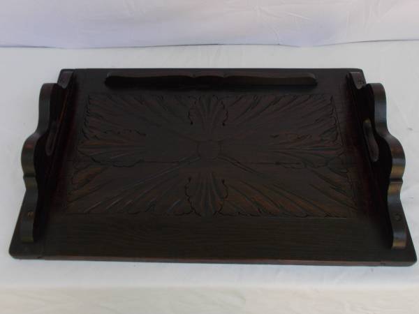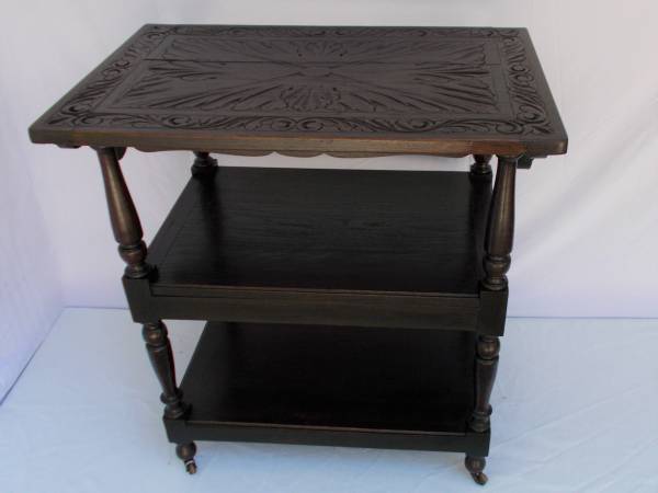 Antique Butler bar removable sliding Tray tea cart hand carved. This came originally out of my family's estate in Europe. original finish, always maintained with bees wax Height: height 31 inch x 28...