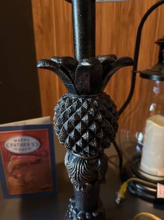 Two ,nice solid like new, pineapple design, cast iron table stand lights. $20.00 each