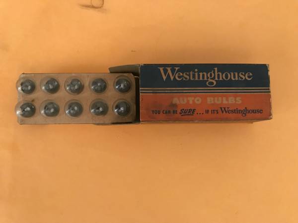 Westinghouse vintage “Auto Bulbs”. Contains ten (10) original bulbs - Box is in one piece, good condition (NOS), box is worn, but not “smashed” or torn. Bulbs appear to be in excellent condition....