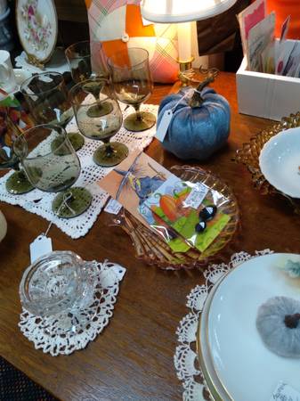 Vintage Textiles, including Quilts and Quilt pieces, Doilies, Fabrics, Trims, Sewing Notions, and Buttons. Joann's is closed, but find quilting fabrics and buttons in #46. Halloween and Fall Fabrics including Lots of FQs and 1/2 yd cuts!
