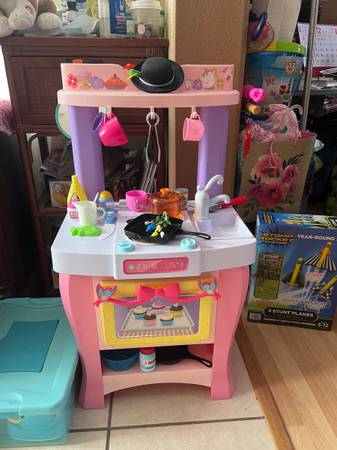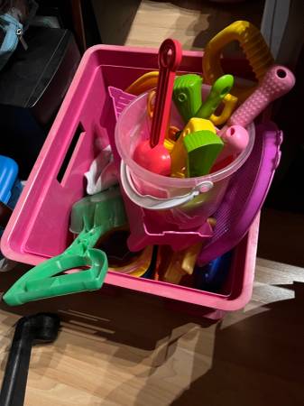 Hi! Our kids are outgrown and we are moving soon… can’t take all, all in great Small bird cage, $20 Beach toys, $20 Baby swing, $60 with charger Huge 3 story Kidcraft doll house, $90 baby doll...