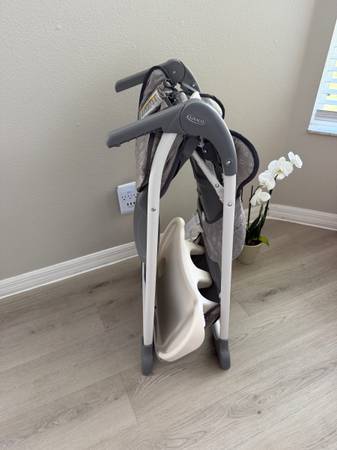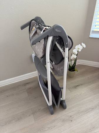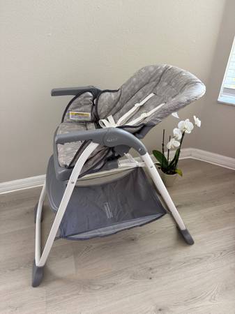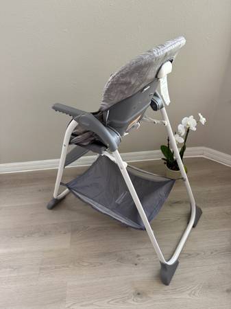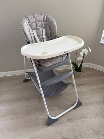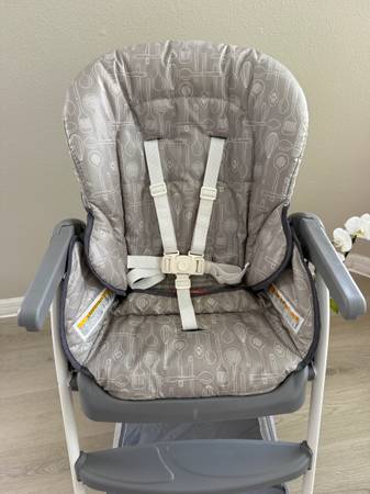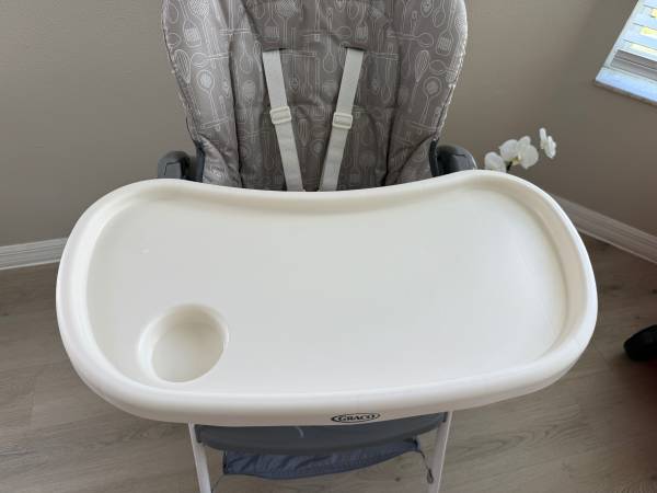 Used but great shape Graco Highchair. This was ONLY used as a vacation chair so didn't see regular use. Pretty clean as shown in pics. Straps also clean! Has a handy basket underneath for bibs etc and to store the tray! Reclines as well! See all pics then send a time to pick up! Will go with quickest pick up!