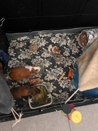 All male, all are very healthy, playful and cuddly, perfect for your littles, we are asking for rehoming fees $40 each for Guinea and $20 for hamster to go to good home, they require lots of love and care. They eat a lot of hay, pallets and fresh fruit and vegetables, if you take all, I can include cage if you don’t have one already, food, beddings, hays and hiding igloos. Turtle, smaller than palm size, $50 each. I have 2.