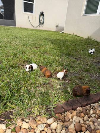 Perfect for birthday and Christmas. All guinea pigs are male, all are very healthy, playful and cuddly, we are asking for rehoming fees $40 each for Guinea and $20 for hamster to go to good home, they require lots of love and care. They eat a lot of hay, pallets and fresh fruit and vegetables, if you take all, I can include cage if you don’t have one already, food, beddings, hays and hiding igloos. Turtle, smaller than palm size, $50 each. I have 2. I also have cages for sell.