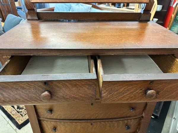 This chest of drawers with rotating mirror is the perfect addition to any rustic bedroom.