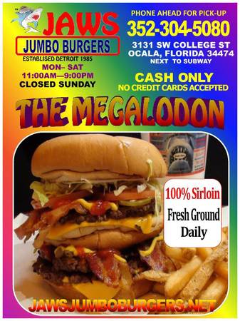 We are Not selling Jaws jumbo Burgers. For $230,000 Cash. You can get our Business and Phone Number.