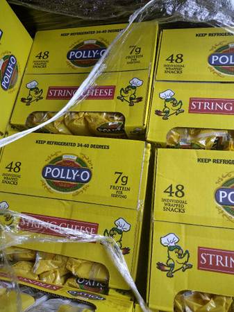 We have 3lb bags of String cheese 48 count individually wrapped $7. a bag these bags sell for $18. each at Sam's or BJ's with us they're 3 bags for $18. case 10 bags is $55. and the shelf pull date...