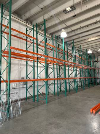 Teardrop Industrial Racking Storage Shelving nstallation and Delivery Available FREE Estimate is given! Many Many Sizes Can go 8ft, 10ft, 12ft, 16ft, 18+ ft High Orange Shelves from 4ft to 12ft Long...
