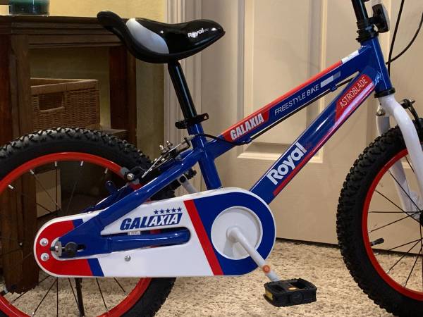OVERSTOCK SALE! WAS $200. BRAND NEW from our inventory! Just took it out of the box and assembled it for you! Timeless design, quality components, easy riding. The RoyalBaby 16" Galaxia FreeStyle kids bicycle was designed with inspiration from the BMX spirit. It's all about fun, creativity, freedom, and friends. With kids in mind, the Freestyle is a timeless design perfect for the next cycling star! Rider height: 43.7” to 51.2”, ages 4-7 years, Blue/Red/Black. Text Joel at show contact info