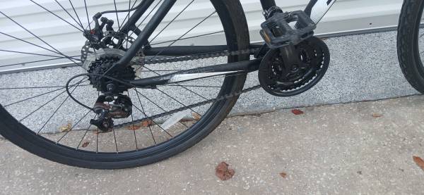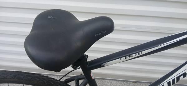 700 cc wheels , custom seat. I bought a new shifter cable for it as you can see it's hanging from the handlebar and I had someone do it but they didn't do it right .I haven't had a chance to even look at it I'm sure it's an easy fix .I just took it out of my storage locker after 2 years. this bike is $350 new at Walmart it's in good shape