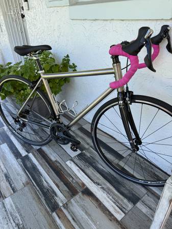 Very nice and comfortable ride. 105 Shimano 11 Speed. 700C 26 tire. Carbon handle bar. good brakes all works well.