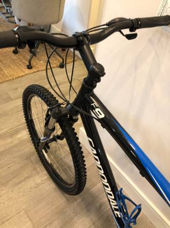 Cannondale F9 Mountain bike. Size Extra-large Aluminum frame 26” Tires with new tubes, bike is cleaned and tuned has new grips, gear and brake cables, seat post and wheels are quick release, 24 speed, Perfect bike for off road, fun commuting trail riding. Bike has some scratches and scrapes but looks great, and you could ride it home. As with any bike I offer for sale you’re welcome to ride it as much as you like if you can see this ad it’s still for sale not sure how old it is or how much it weighs. Available for immediate Pick up in Winter Springs thanks. .cell show contact info