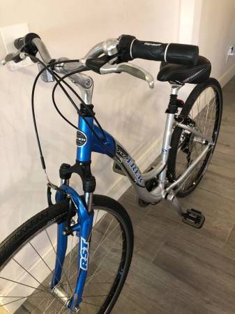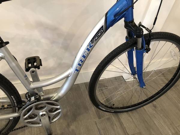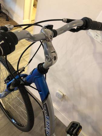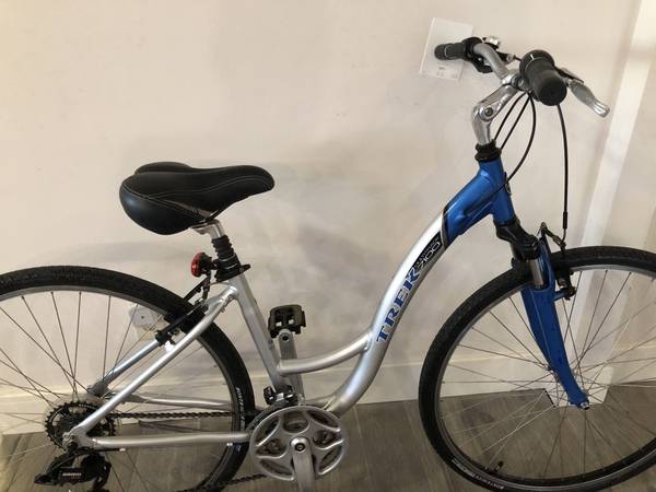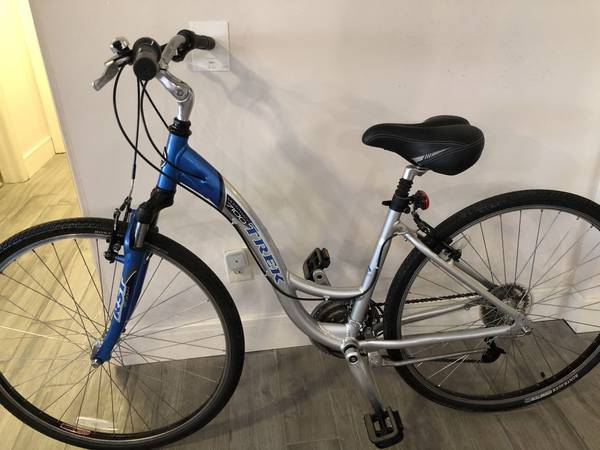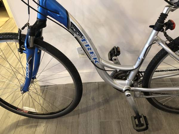 Trek 7100 hybrid comfort bike, nice easy to ride bike. size medium 16” aluminum step thru frame, 700x35c tires with new tubes, wheels and seat post quick release, 21 speed, front suspension Fork and suspension seat post to soften the ride. perfect bike for commuting trail riding, pleasure ride bike is cleaned/ tuned has new brake cables. Bike looks great and you could ride it home as with any bike I offer for sale you’re welcome to ride it as much as you like if you can see this ad it’s still for sale not sure how old it is or how much it weighs. Available for immediate Pick up in Winter Springs thanks. YOU CAN Also click on my name to see other bikes I have listed Paul .. show contact info