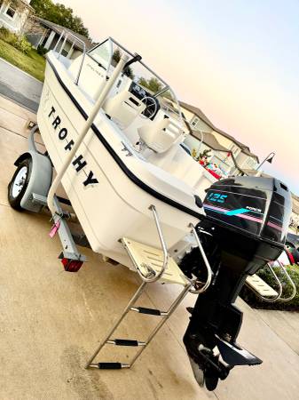 I have a 1995 Bayliner trophy walk around Cuddy cabin 20 foot. This boat has new gouges new Simrad depth finder/fishfinder. New radio all lights work on Boat and Trailer bilge pumps work. Everything works as it should no soft spots solid floor solid transom. This boat is an excellent condition. Trailer has new rims and tires and a new spare rim and tire lights work on trailer. New axle motor runs great great compression on all cylinders new tilt and trim. this boat was never in saltwater lakes only comes with plenty of lifejacket. This boat is water ready, clean title in hand asking 6000 or best offer series buyers only no lowball offers for more information. Please call or text.2️⃣1️⃣4️⃣5️⃣2️⃣9️⃣1️⃣1️⃣7️⃣2️⃣