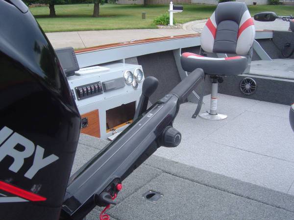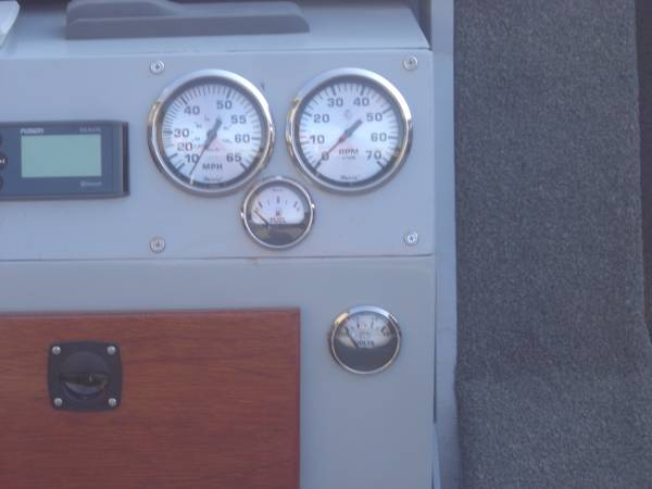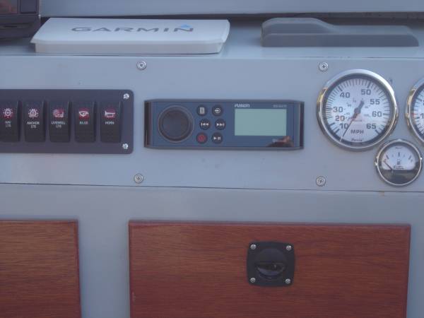 FULL CONSOLE WITH ALL GAUGES, LIGHTED SWITCHES, FUSION STEREO WITH 7" FUSION MARINE SPEAKERS, FUSE PANEL, STORAGE AND A COMPLETE FLOW-RITE LIVE WELL CONTROLS AND PUMPS.