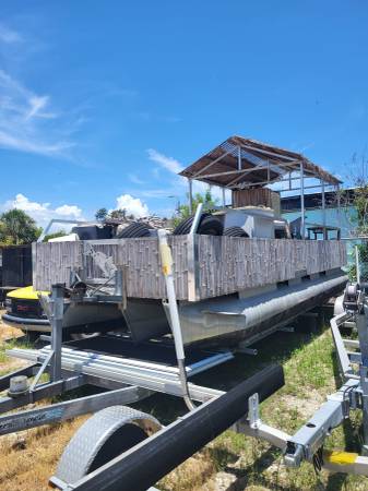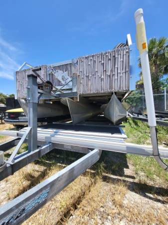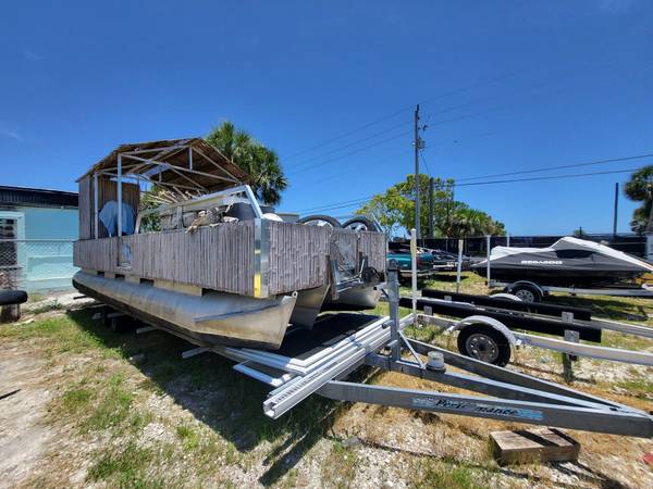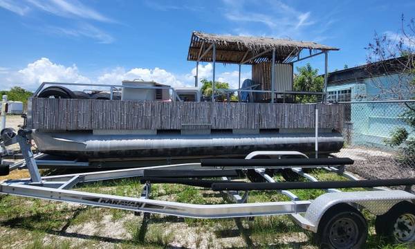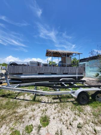 24 ft Triton Pontoon Boat Tiki Bar Furnished, No motor.