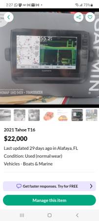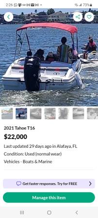 Like New family boat. T16 .75 outboard mercury low hrs. 2 anchor. 7 safe vests. Garmin sonar fishing 94SV. Blue tooth radio. Trailer include with Electric brakes. .New spare tire never used.....