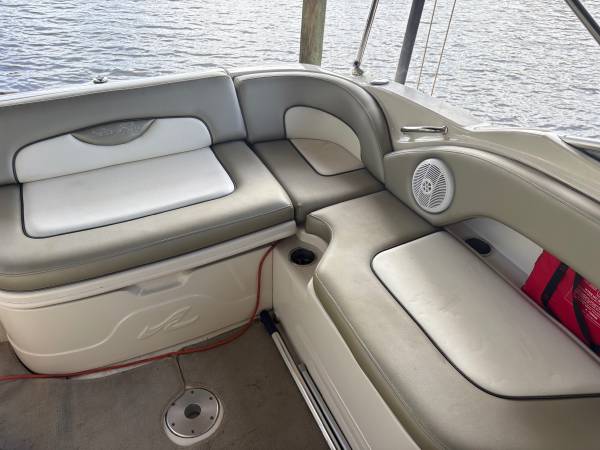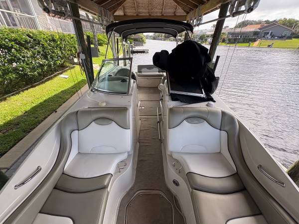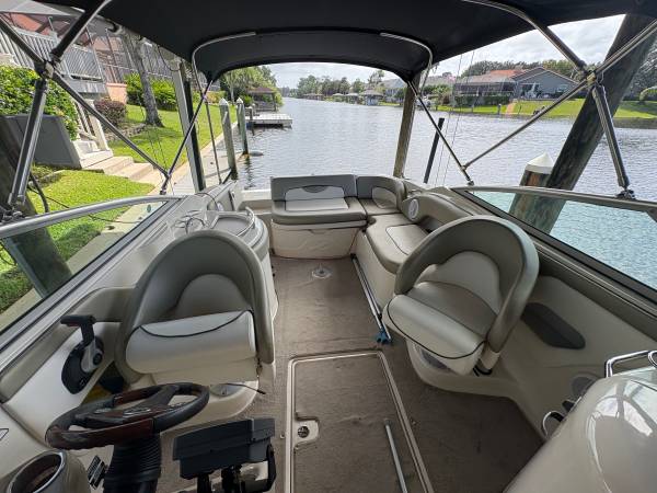 2006 Sea Ray 270 Sundeck powered by a 6.2 Mercruiser with 158 hours. This is a 1 owner very well taken care of Sea Ray located in Palm Coast Fl. The boat features a Clarion Sound System, a new Garmin Echo 50s, Ritchie Compass, trim tabs, bilge blower, marine head, freshwater showers,courtesy lighting, 2 tables, in deck storage,Pro Mariner on board battery charger, stainless steel grab Rails, stainless steel cup holder and all new canvas. The boat is located in Palm Coast. $28,900