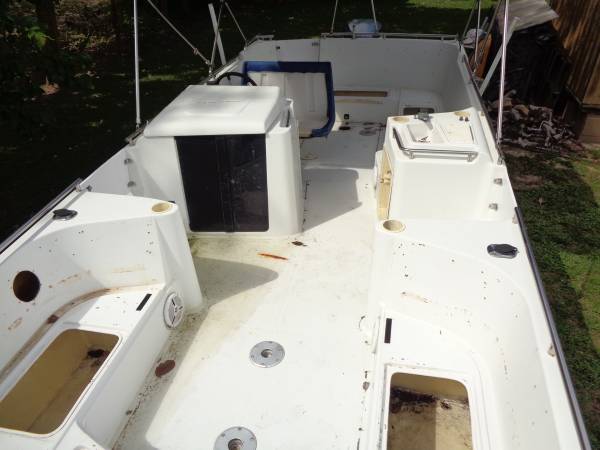 THE HULL: The hull is solid (should you need one). On the hull are stainless steel fittings, a nice Bimini top with frame. The frame is stainless steel, not aluminum! In front of the helm is a small cabin for a port a Poti. The folding doors are available.
